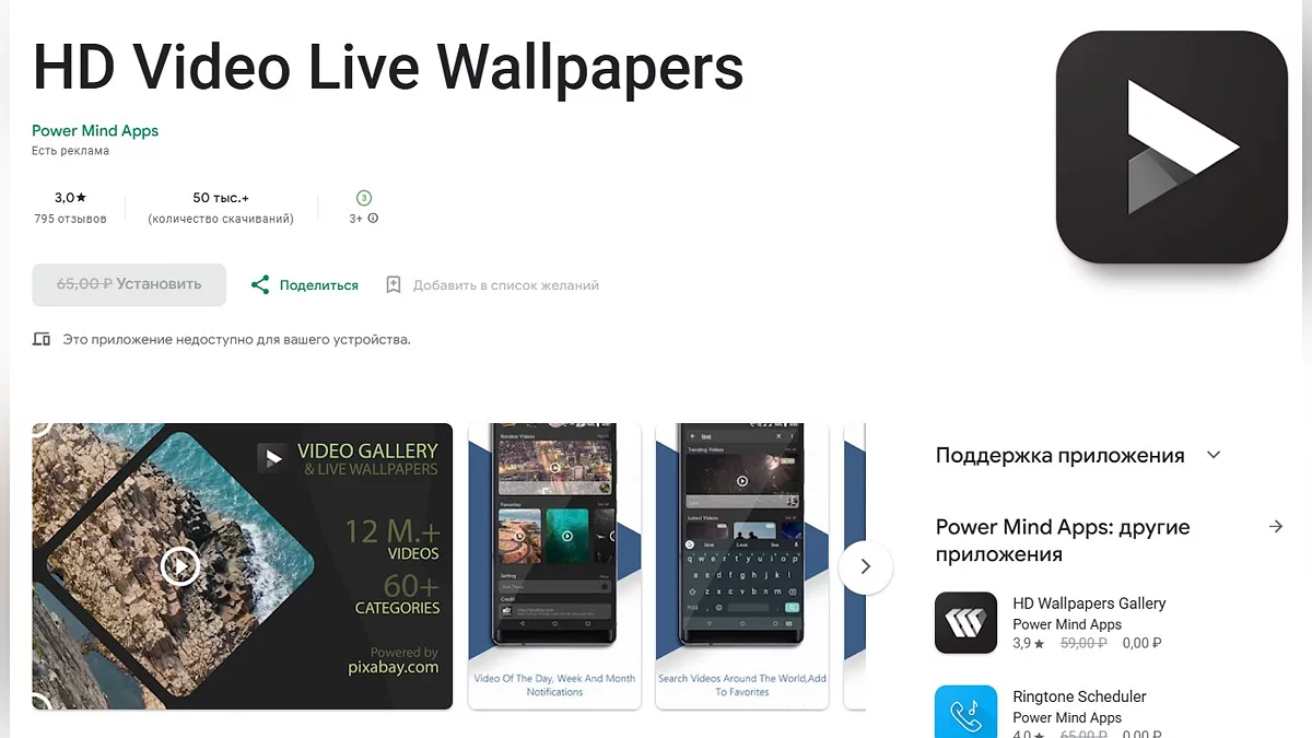 - HD Video Live Wallpapers — галерея живых обоев (загрузить бесплатно);