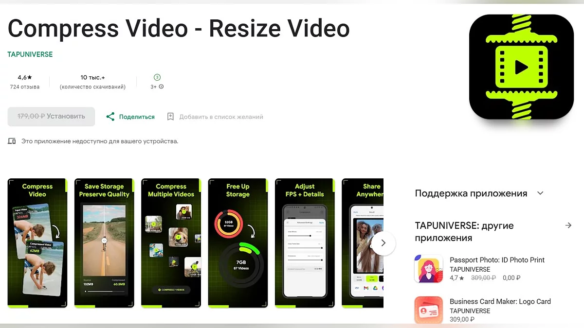 - Compress Video — Resize Video — программа для сжатия видеороликов, позволяющая уменьшить их размер (загрузить бесплатно).
