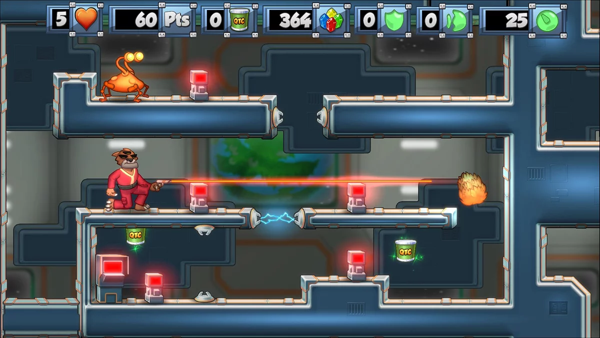 Super Squash — аркадный shoot 'em up с видом сверху, действие которого разворачивается в разных мирах. Есть 15 уровней, 4 режима, 7 боссов и 8 игровых персонажей. Раньше проект стоил 30 руб.