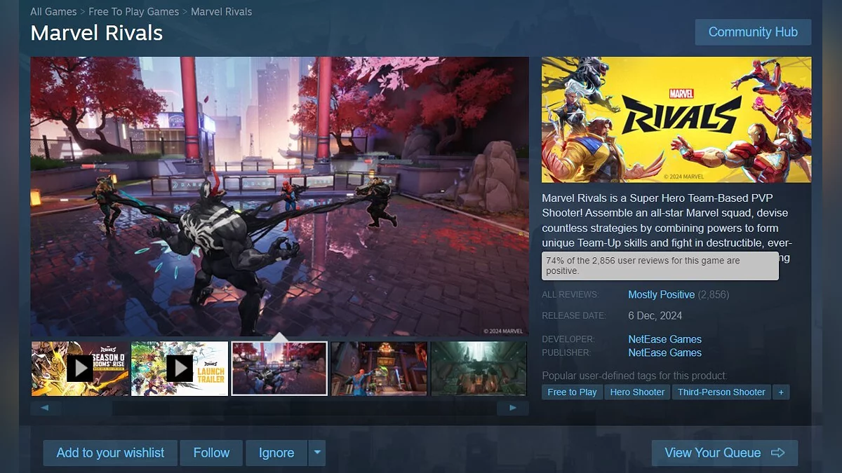 Компания NetEase Games выпустила на PC, PS5 и Xbox Series X/S командный PVP-шутер в стиле серии Overwatch под названием Marvel Rivals. Первые отзывы в Steam — в основном положительные (рейтинг 74%).