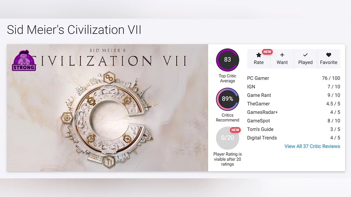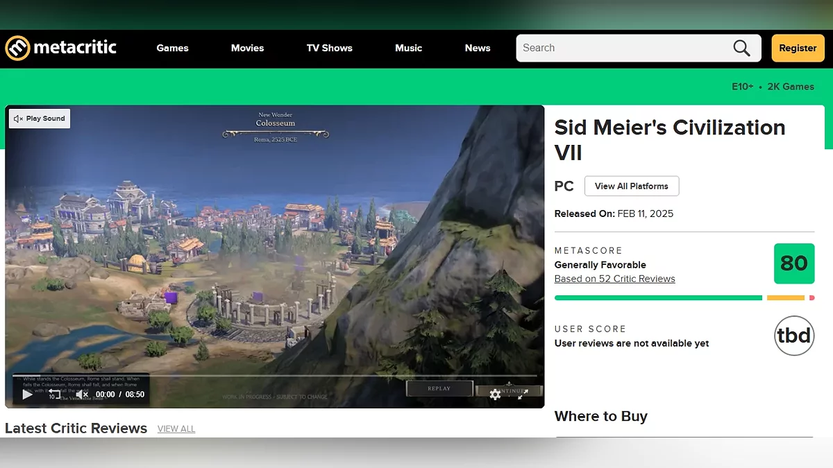 Подоспели оценки критиков новой части пошаговых стратегий Sid Meier's Civilization 7. Проект получил 80 баллов из 100 на Metacritic и 83 балла из 100 на Open Critic, что стало самым низким показателем для серии.