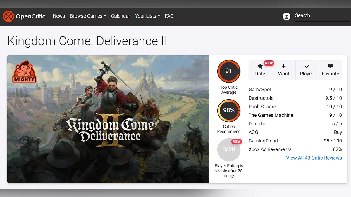 Эмбарго спало, и зарубежные игровые издания опубликовали свои оценки исторического RPG-экшена Kingdom Come: Deliverance 2. Проект заработал 89 баллов из 100 на Metacritic и 91 балл из 100 на Open Critic.