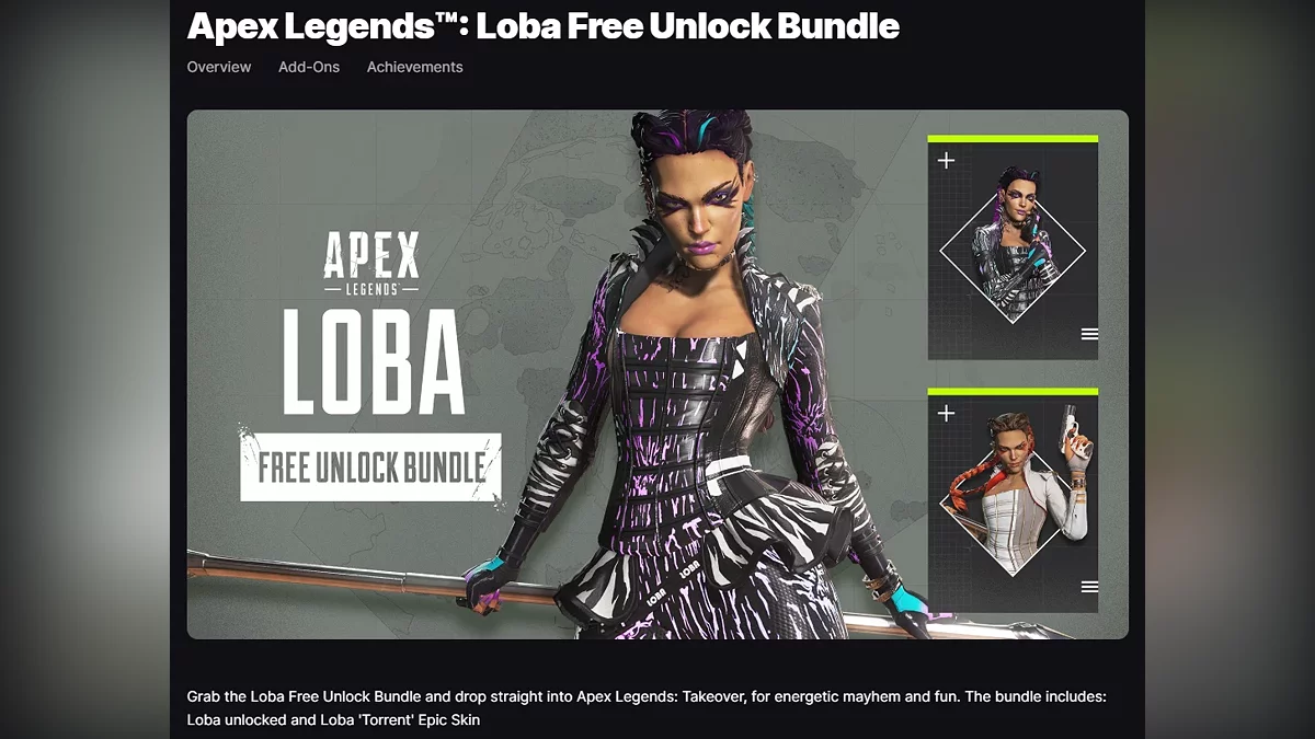 Вместе с ней также раздают бесплатный набор Apex Legends: Loba Free Unlock Bundle.