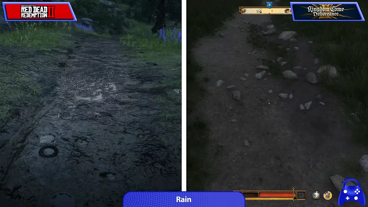 На видео сравниваются физика воды, охота на зверей, растительность, верховая езда, взаимодействие с предметами, дождь, освещение, текстуры и разные животные. Обе игры были запущена на PC с видеокартой RTX 5090.