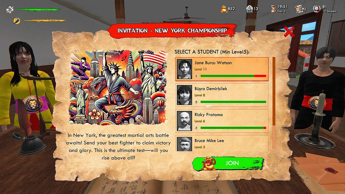 В Fight School Simulator геймеры могут создать собственную школу боевых искусств, чтобы впоследствии соперничать с другими за первенство. Можно участвовать в турнирах, воспитывать учеников и зарабатывать деньги для развития школы.