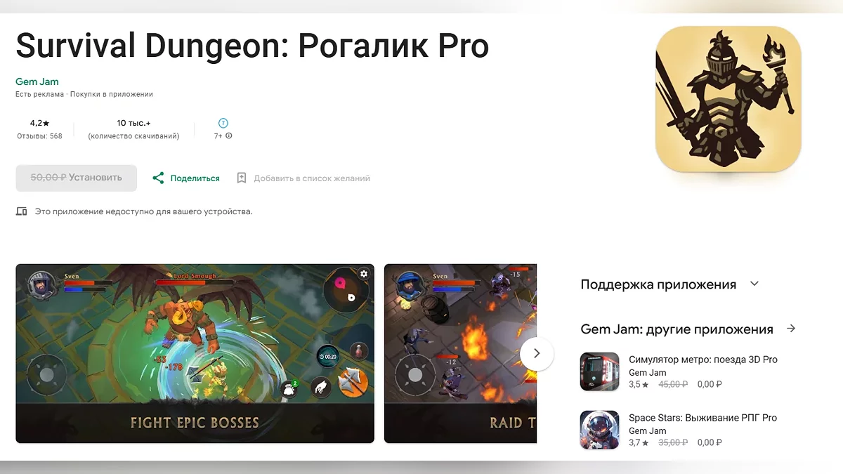 - Survival Dungeon — рогалик про исследование подземелий и сражения с чудовищами (загрузить бесплатно);