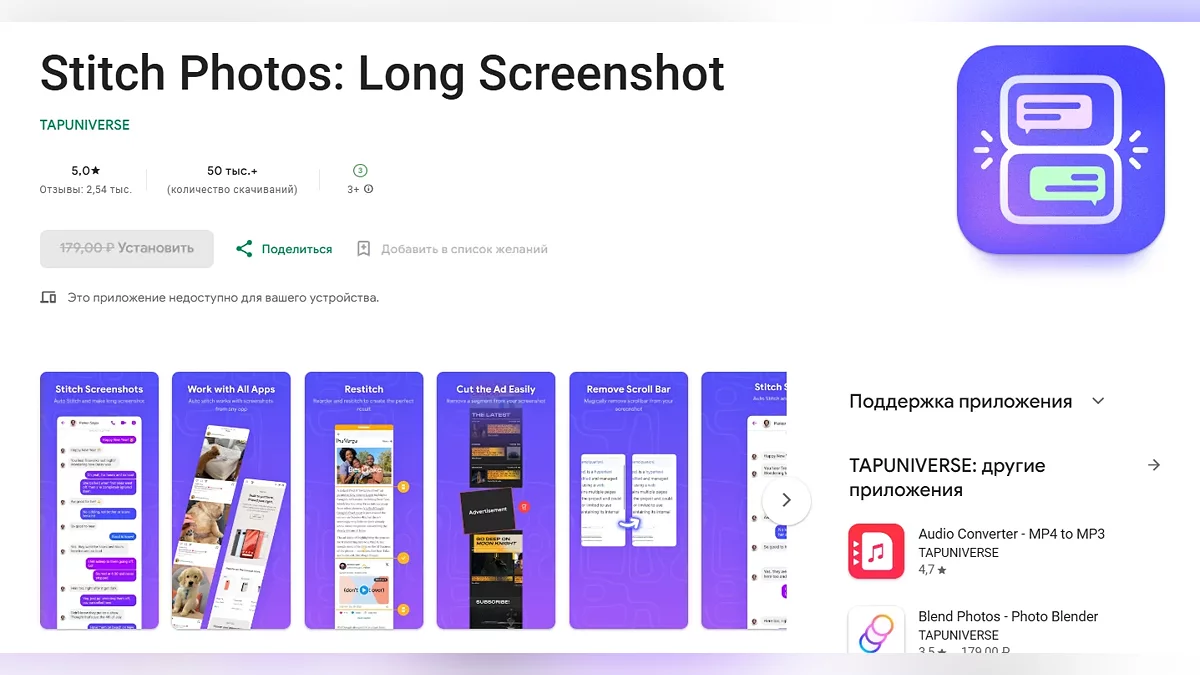 - Stitch Photos: Long Screenshot — программа для склейки скриншотов или фото (загрузить бесплатно).