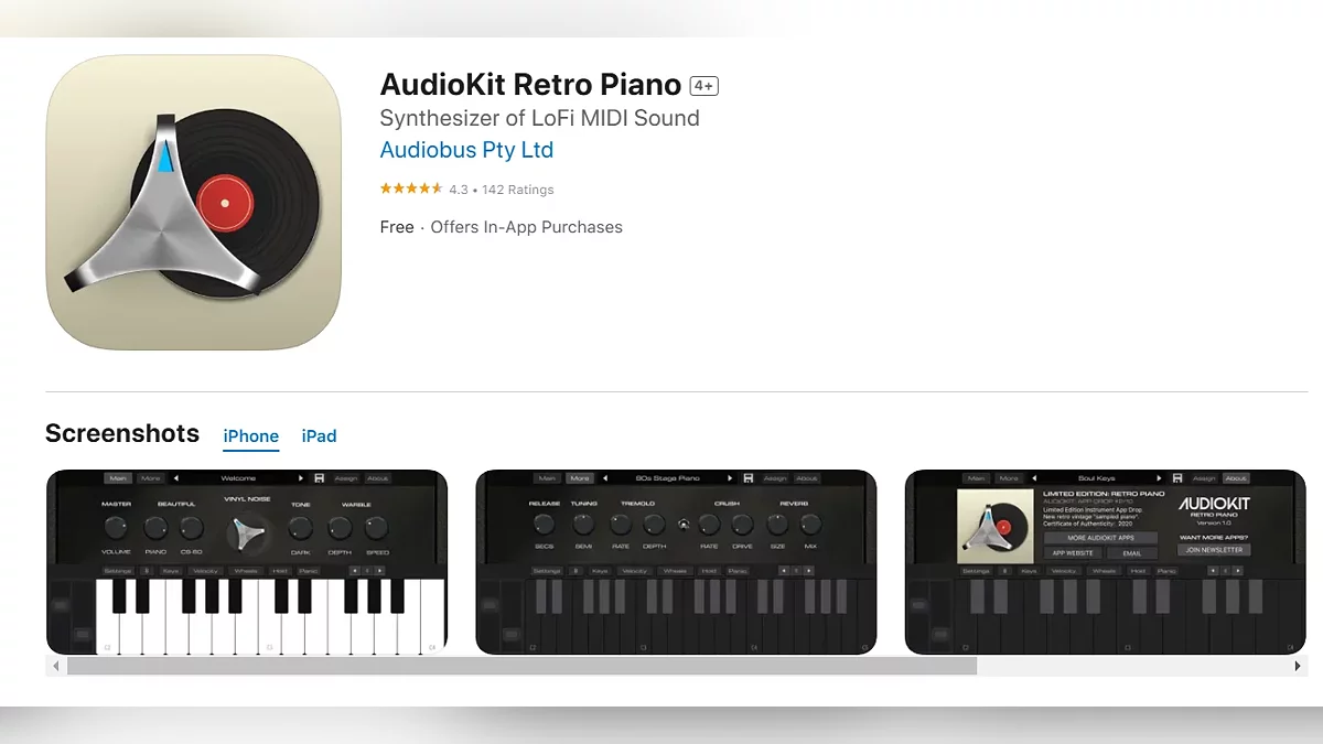 - AudioKit Retro Piano — виртуальное винтажное пианино (загрузить бесплатно);