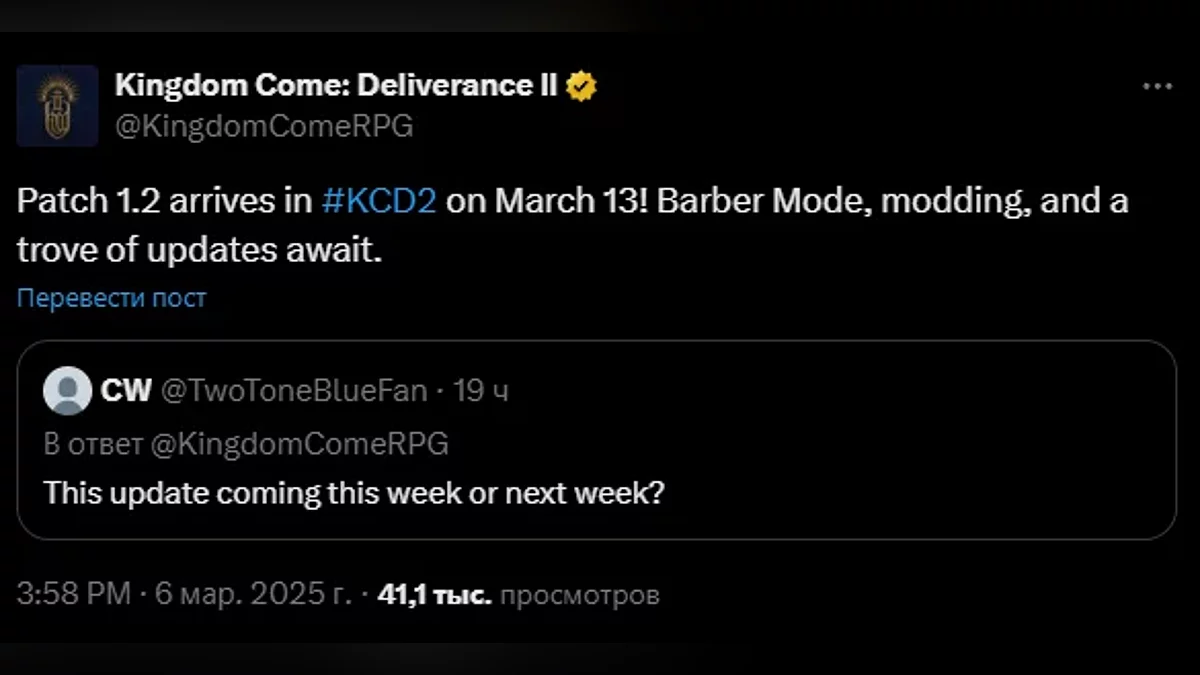 Игровые новости Новости Авторы Kingdom Come: Deliverance 2 назвали точную дату выхода масштабного патча с поддержкой модов