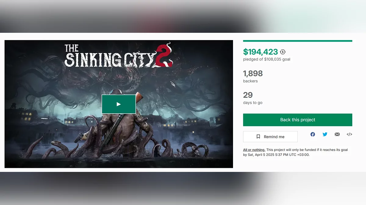 Студия Frogwares опубликовала новый геймплейный ролик приключенческого экшена The Sinking City 2, который вдохновлен произведениями Говарда Филлипса Лавкрафта (Howard Phillips Lovecraft). Авторы также сообщили, что запустили краудфандинговую кампанию на Kickstarter.