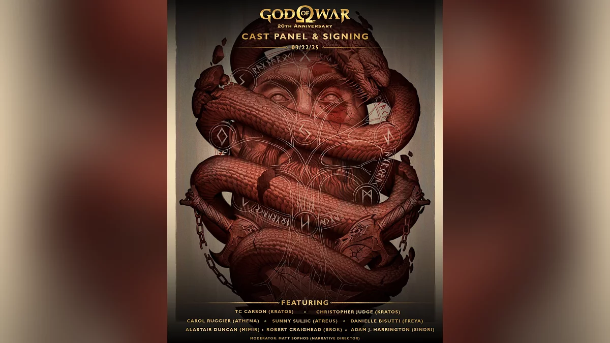 Зато игрокам показали новый тематический арт с Кратосом и Йормунгандом. К слову, выставку посетят актёры из God of War, в числе которых «голос» Бога войны Терренс Карсон (Terrence Carson) и Кэрол Руджиер (Carole Ruggier), озвучившая Афину. Мероприятие с их участием пройдёт 22 марта.