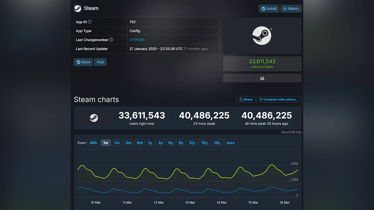 Вероятнее всего, на приток пользователей в сервис Valve повлияла масштабная весенняя распродажа игр с большими скидками. Несколько часов назад в Steam единовременно находилось почти 40,5 миллиона геймеров. Прошлый рекорд продержался чуть меньше двух недель — тогда платформу посетило 40,2 миллиона человек.
