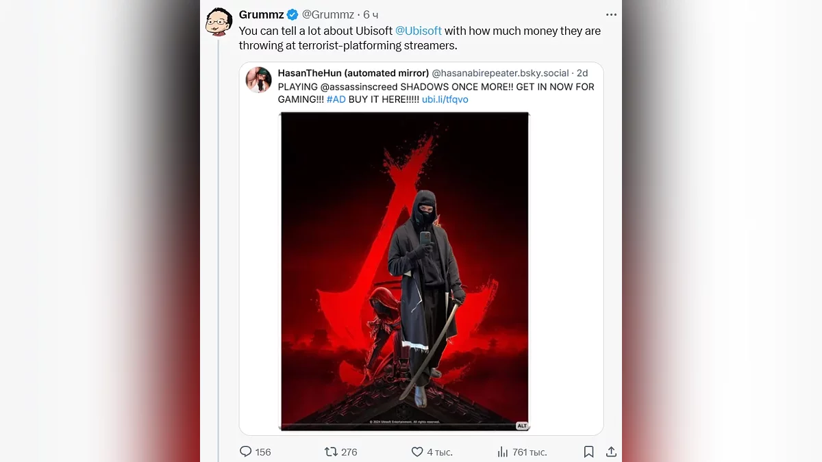 Все началось с того, что игру прорекламировал на своей страничке в X стример Хасан Пайкер (Hasan Piker), который к слову в основном специализируется на политике.