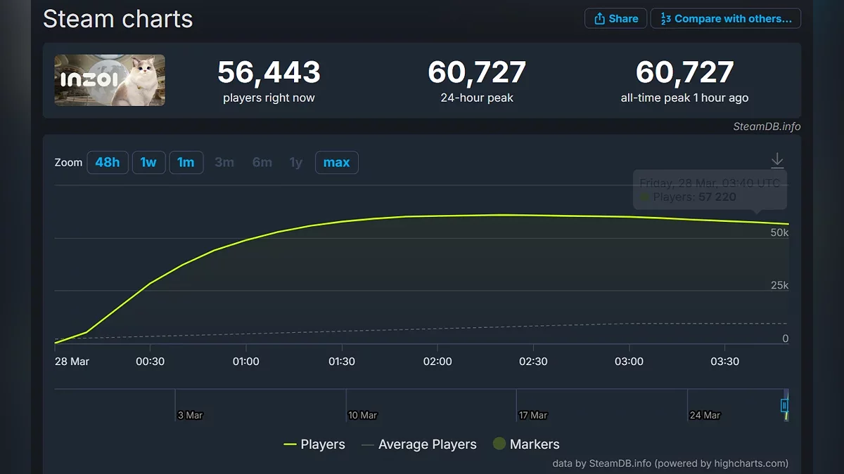 Что касается онлайна, на момент написания новости в пиковый момент в игре было зафиксировано 60,7 тыс геймеров. Однако количество игроков, вероятно, будет еще выше спустя какое-то время.