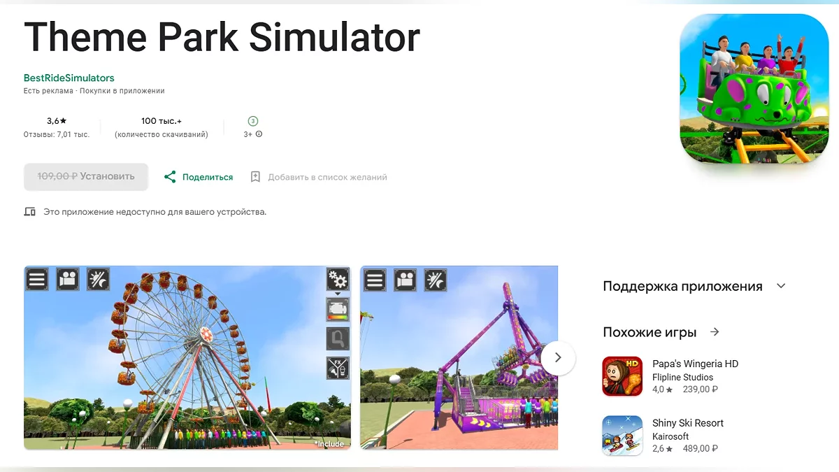 - Theme Park Simulator — симулятор тематического парка развлечений с аттракционами и веселой атмосферой (загрузить бесплатно);