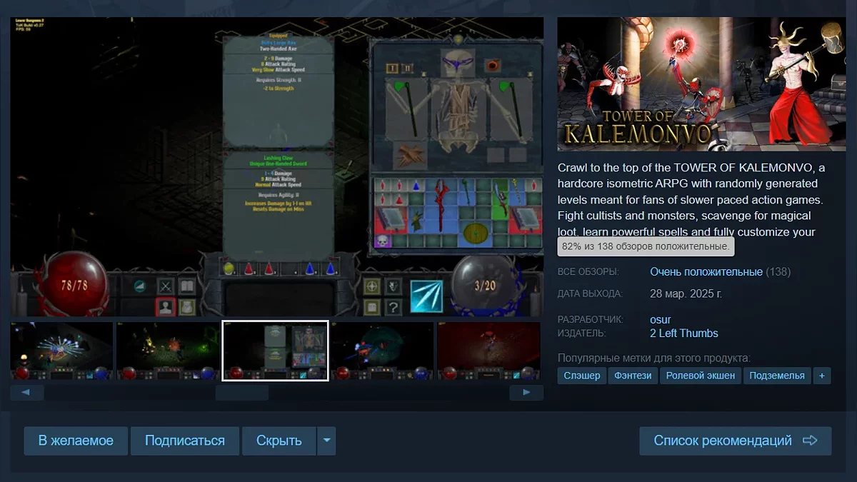 На днях в Steam вышел новый ролевой экшен под названием Tower of Kalemonvo, который вдохновлен Diablo и Throne of Darkness. Первые отзывы геймеров — очень положительные. На момент написания новости рейтинг составляет 82%.