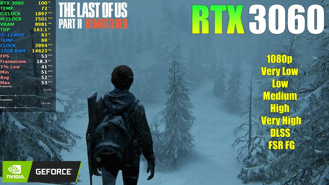 В сети показали, сколько FPS выдает The Last of Us Part 2 Remastered на RTX 3050, RTX 3060, GTX 1050 Ti и RTX 5090