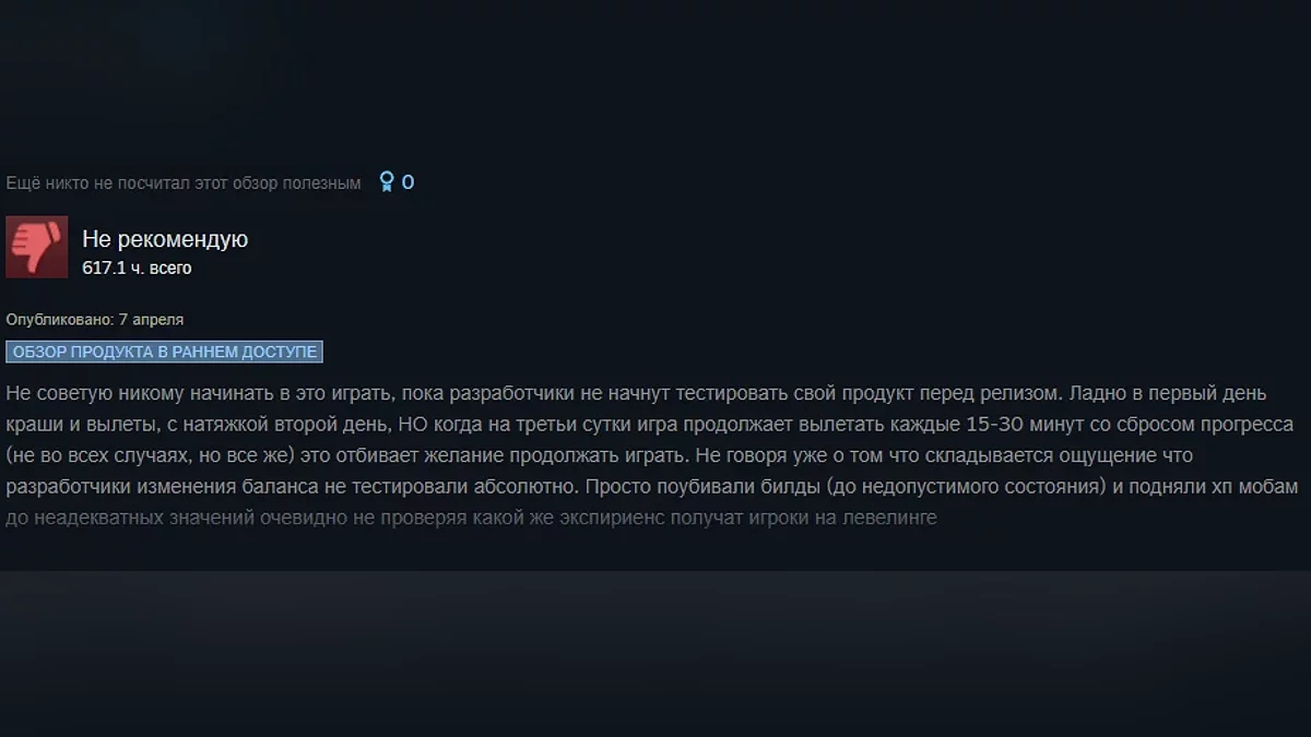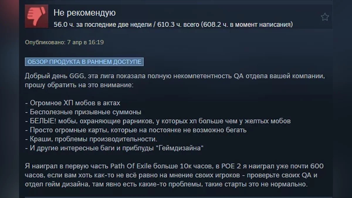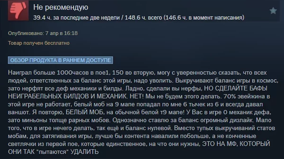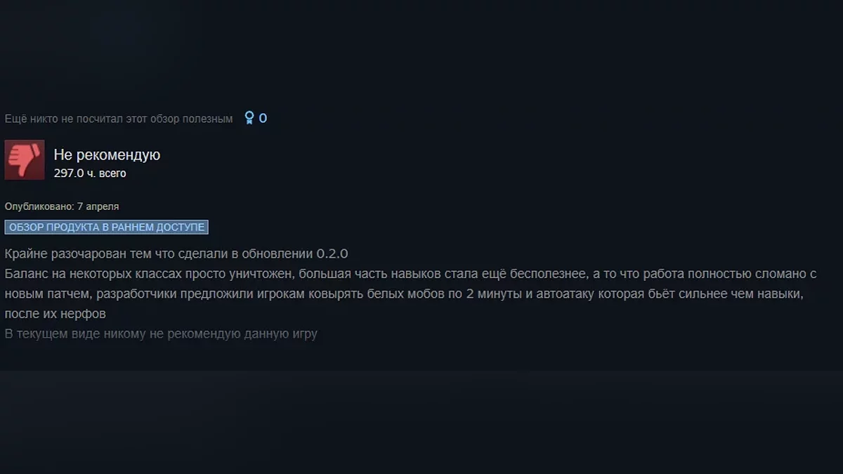 В основном жалобы на патч 0.2 касаются игрового баланса и оптимизации. Многие пользователи повально жалуются на «душный» геймплей, слишком низкий урон, нерабочие билды, перекачанных мобов, а также постоянные вылеты и зависания.