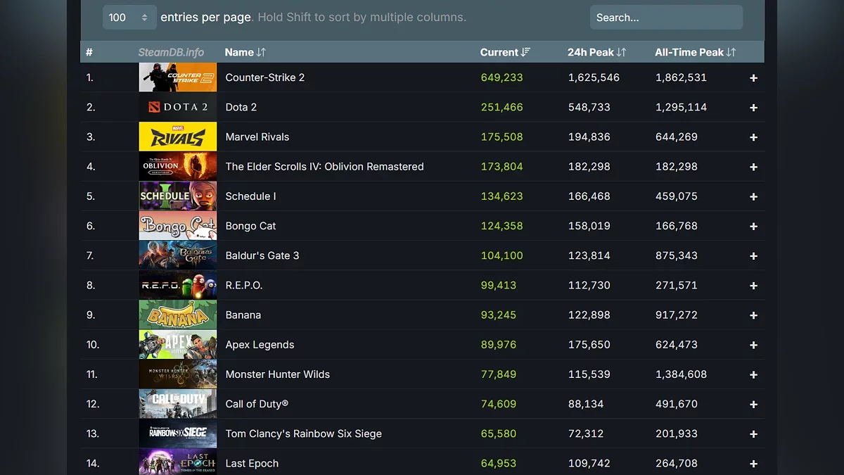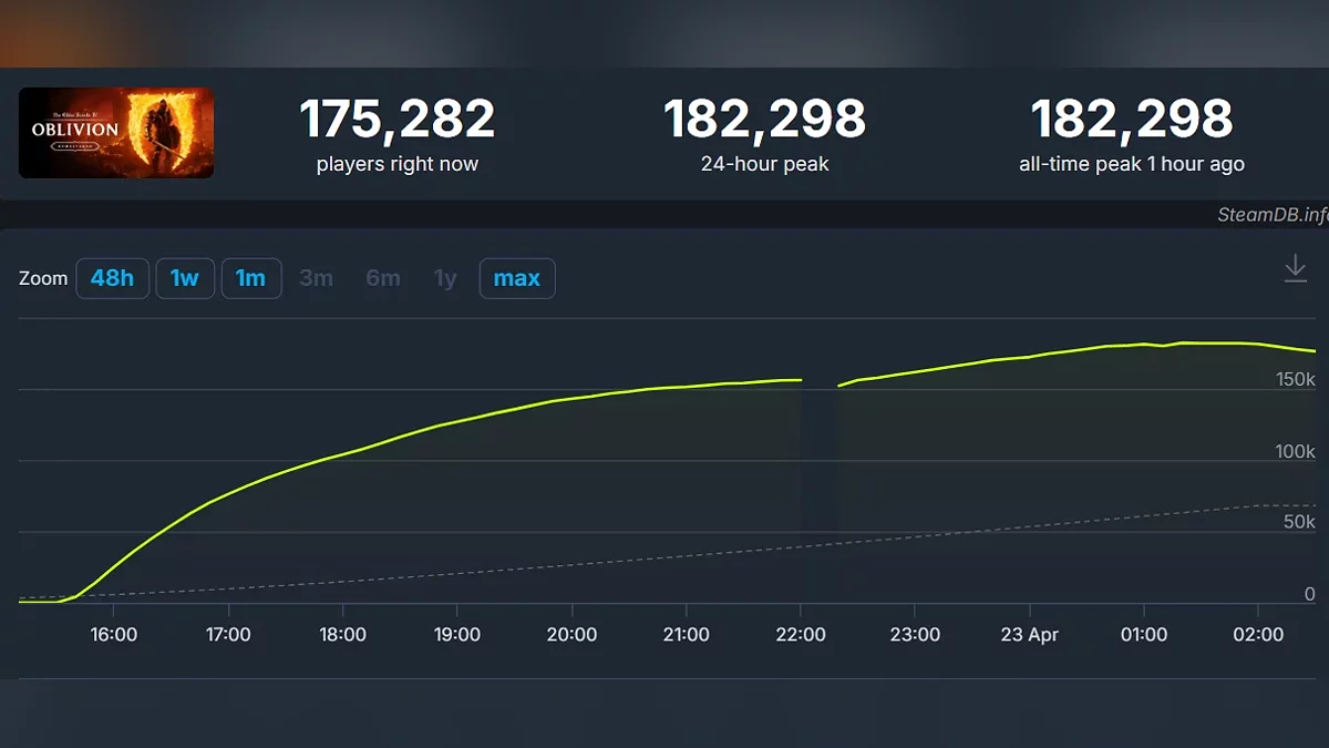 The Elder Scrolls 4: Oblivion Remastered уже попала в топ самых популярных игр по суточному онлайну в Steam. На момент написания новости пиковое количество одновременных игроков в игре составило 182 тыс.