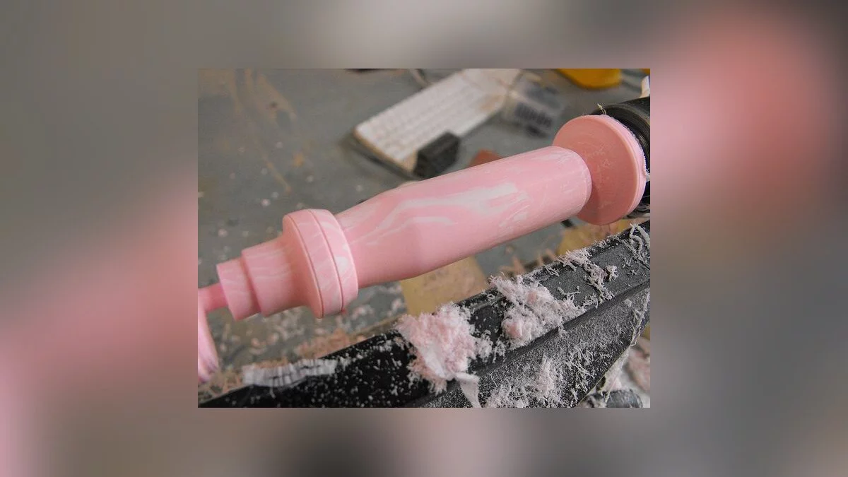 С рукоятью пришлось повозиться. В концепт-арте на рукояти было пять прорезей по всему периметру. Поэтому было решено разрезать рукоять, а затем склеить ее заново, вставляя между каждой частью тонкую прокладку.