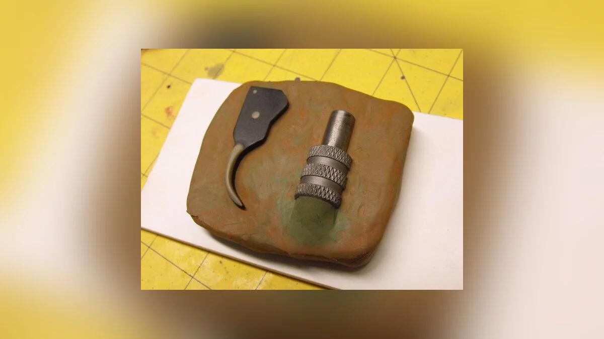 Рукоять и то место, где должен быть курок были обработаны полимерной глиной и впоследствии затерты до гладкого состояния.