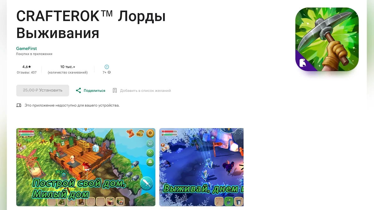- CRAFTEROK Lords of Survival — выживач с крафтом предметов и огромным миром (загрузить бесплатно).