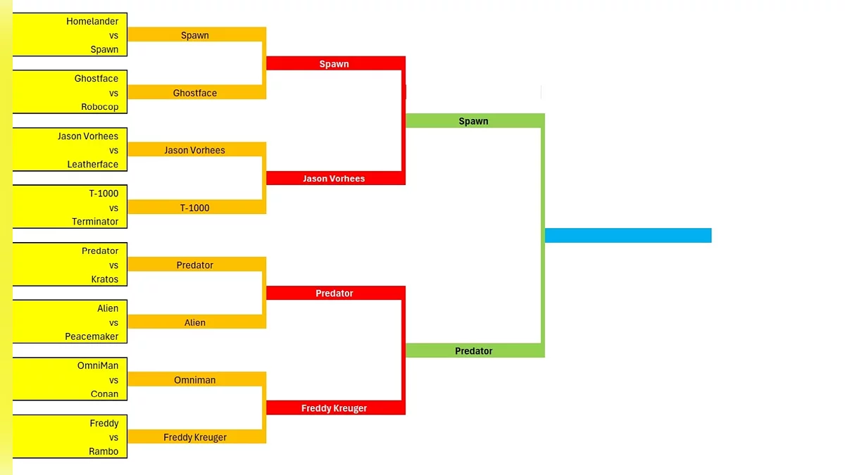 В итоге по завершению голосования победу одержал Спаун. Он получил 53% голосов против 47% у Хищника.