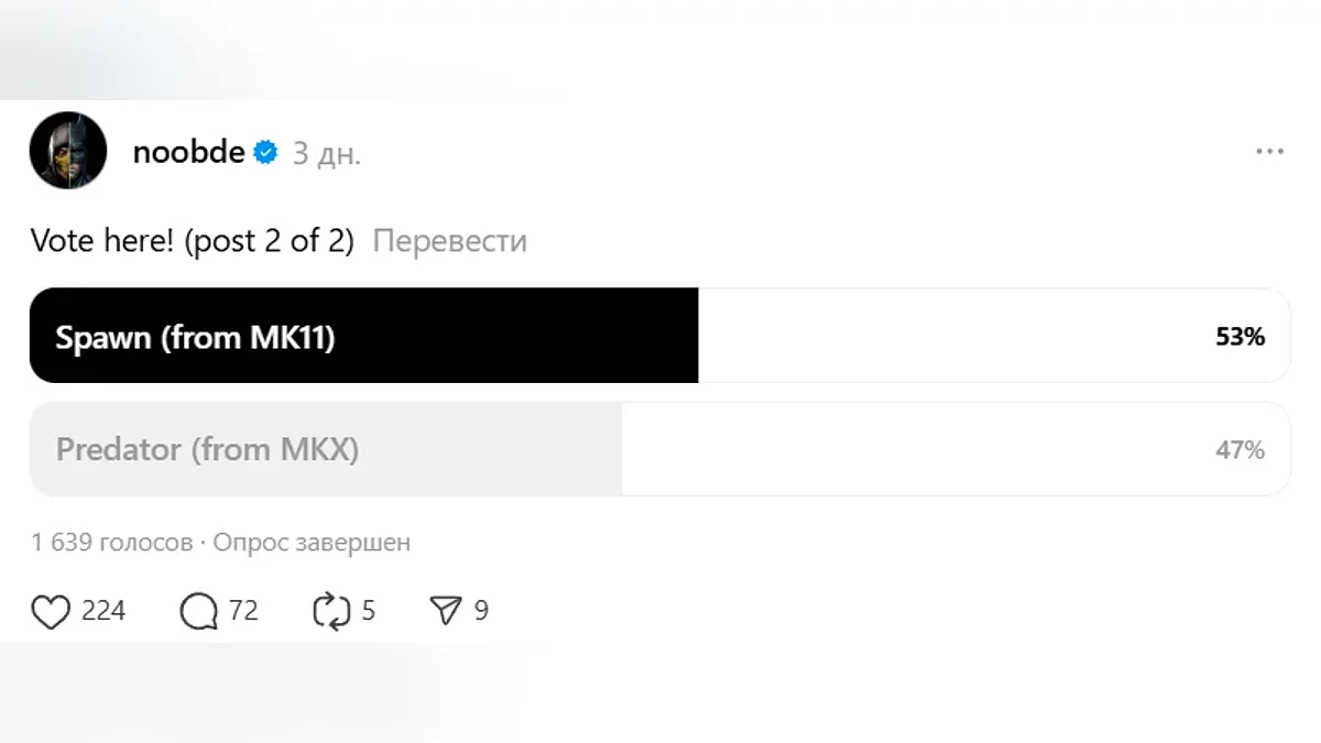 Создатель Mortal Kombat пытается выяснить, какой гостевой DLC-персонаж нравится фанатам больше всего