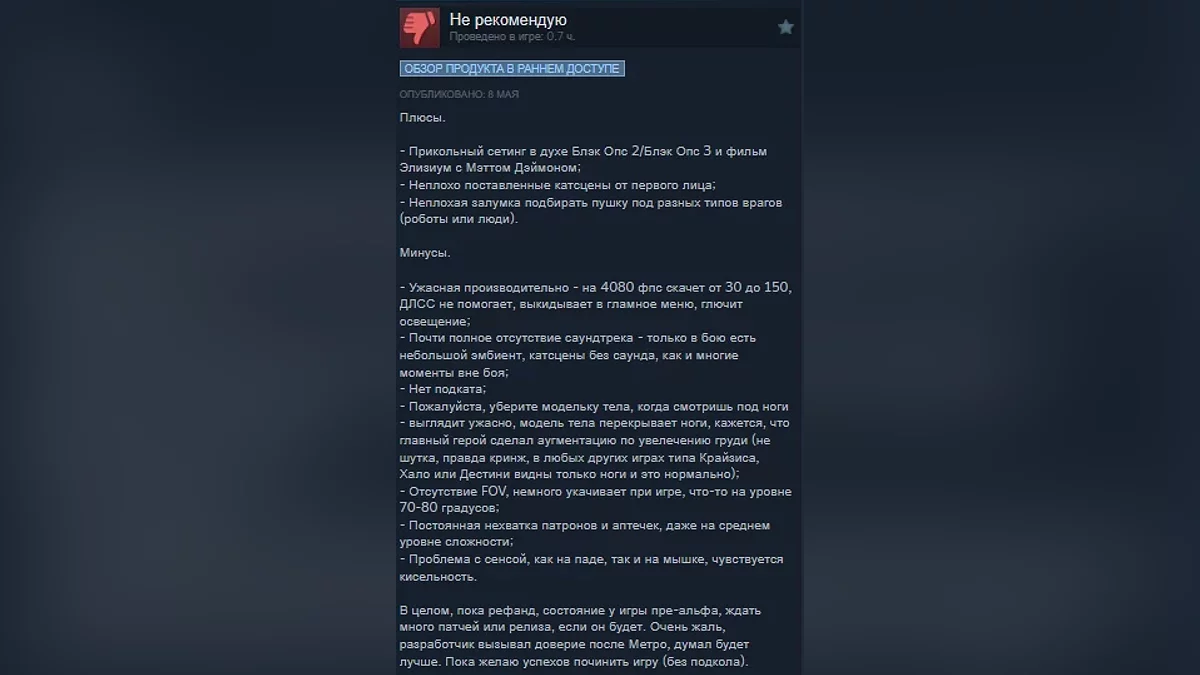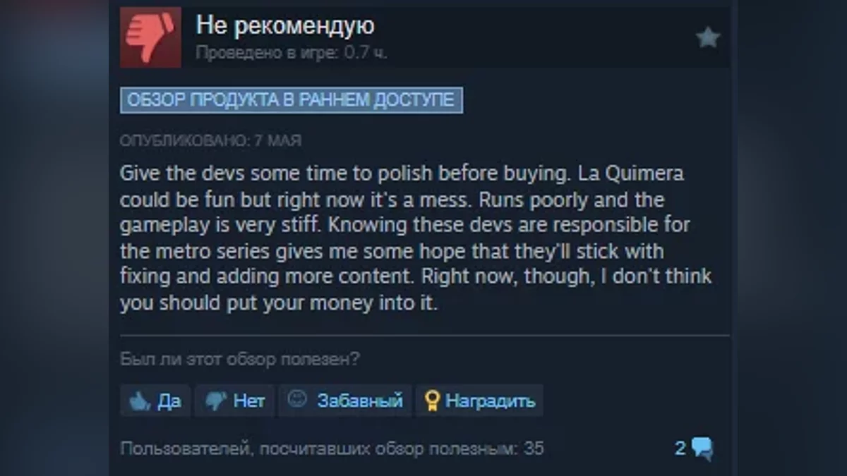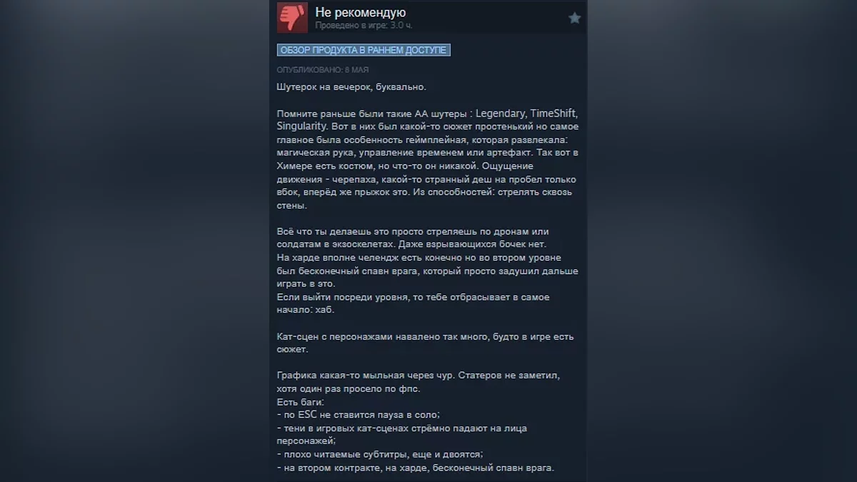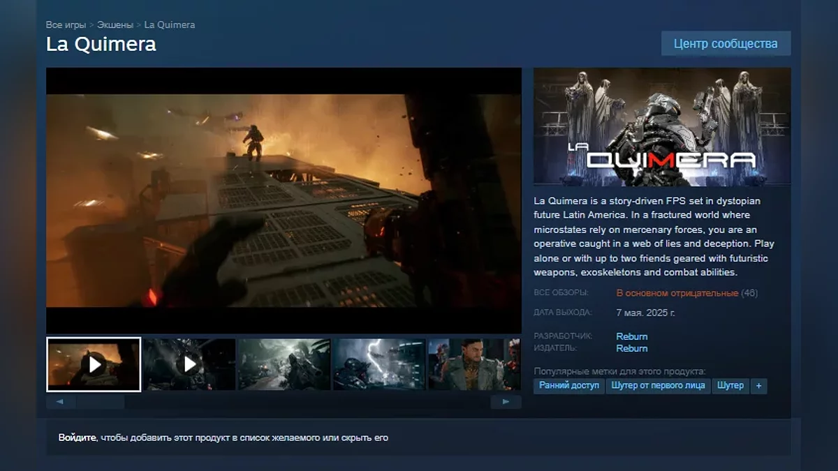 Пользователи Steam опробовали научно-фантастический шутер La Quimera от студии Reburn. Новая игра от бывших разработчиков серии Metro получила довольно низкие оценки, а максимальный онлайн по данным Steam DB составил 102 игрока.