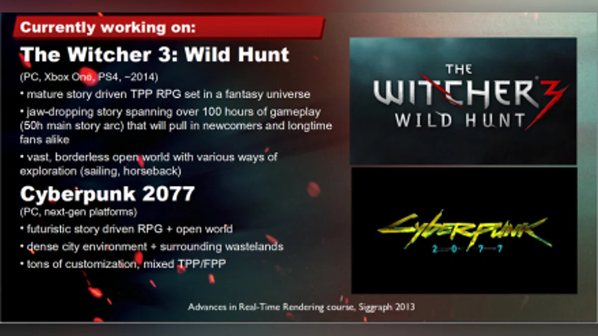 Разработчики студии CD Project Red во время выставки компьютерных и интерактивных технологий Siggraph 2013, поделились информацией о Cyberpunk 2077.