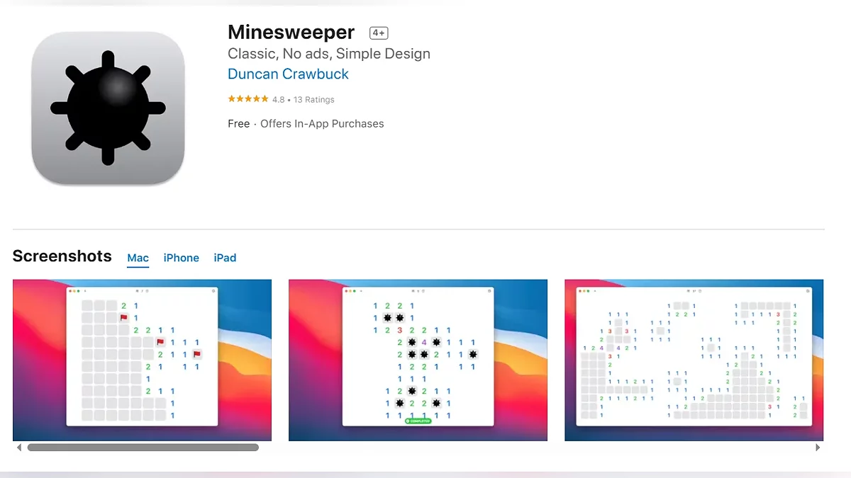 - Minesweeper — еще одна версия «Сапера» с минималистичным интерфейсом (загрузить бесплатно);