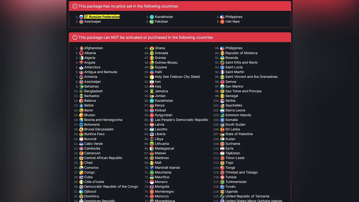 Мы активно обсуждаем проблему региональной блокировки с издателем и делаем ВСЁ ВОЗМОЖНОЕ, чтобы снять её в большинстве стран как можно скорее.