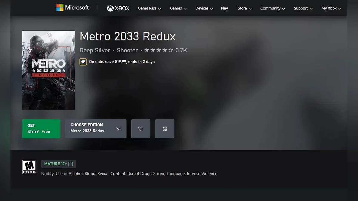 Спустя полтора месяца разработчики из 4A Games решили бесплатно раздать Metro 2033 Redux для пользователей Xbox. Акция доступна для владельцев консолей Xbox One и Xbox Series X/S.