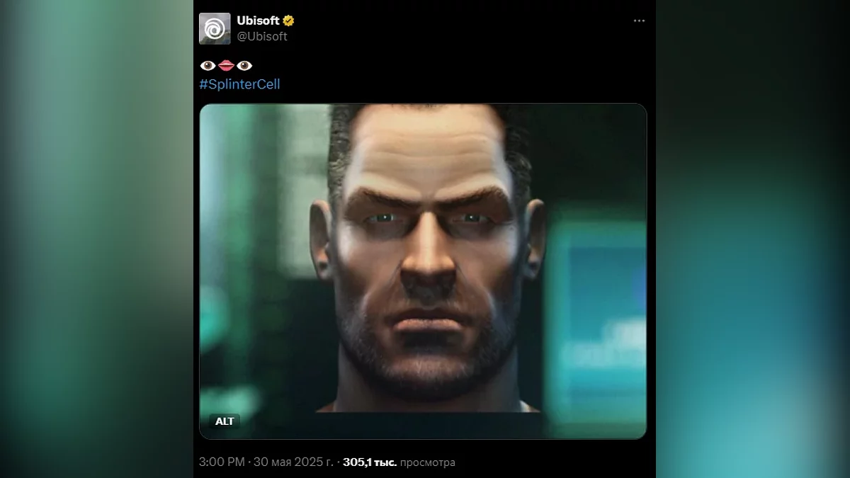 Ubisoft разместила немногословный пост с Сэмом Фишером, протагонистом серии. Игроки тут же принялись гадать, на что намекает компания. Самым очевидным ответом выглядит ремейк Splinter Cell, который находится в производстве с 2021 года — вероятно, его покажут на Summer Game Fest 7 июня.