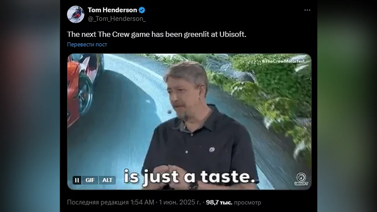 Авторитетный журналист и инсайдер Том Хендерсон (Tom Henderson) сообщил, что руководство Ubisoft одобрило разработку новой The Crew. Скорее всего, ждать её придётся довольно долго.