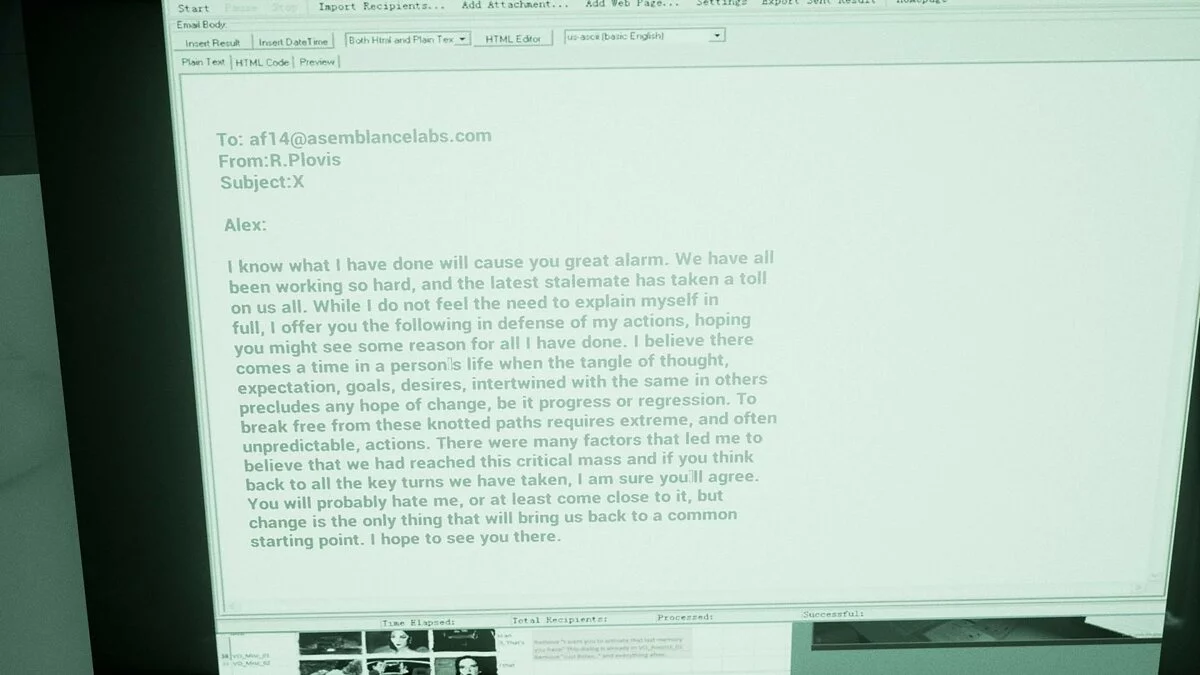 Главный герой не помнит, зачем попал туда, и ему помогает загадочный голос ИИ. В попытках сбежать он сталкивается с фрагментами прошлого, которые могут быть не его собственными. Игра заставляет сомневаться в реальности происходящего и в самом себе.