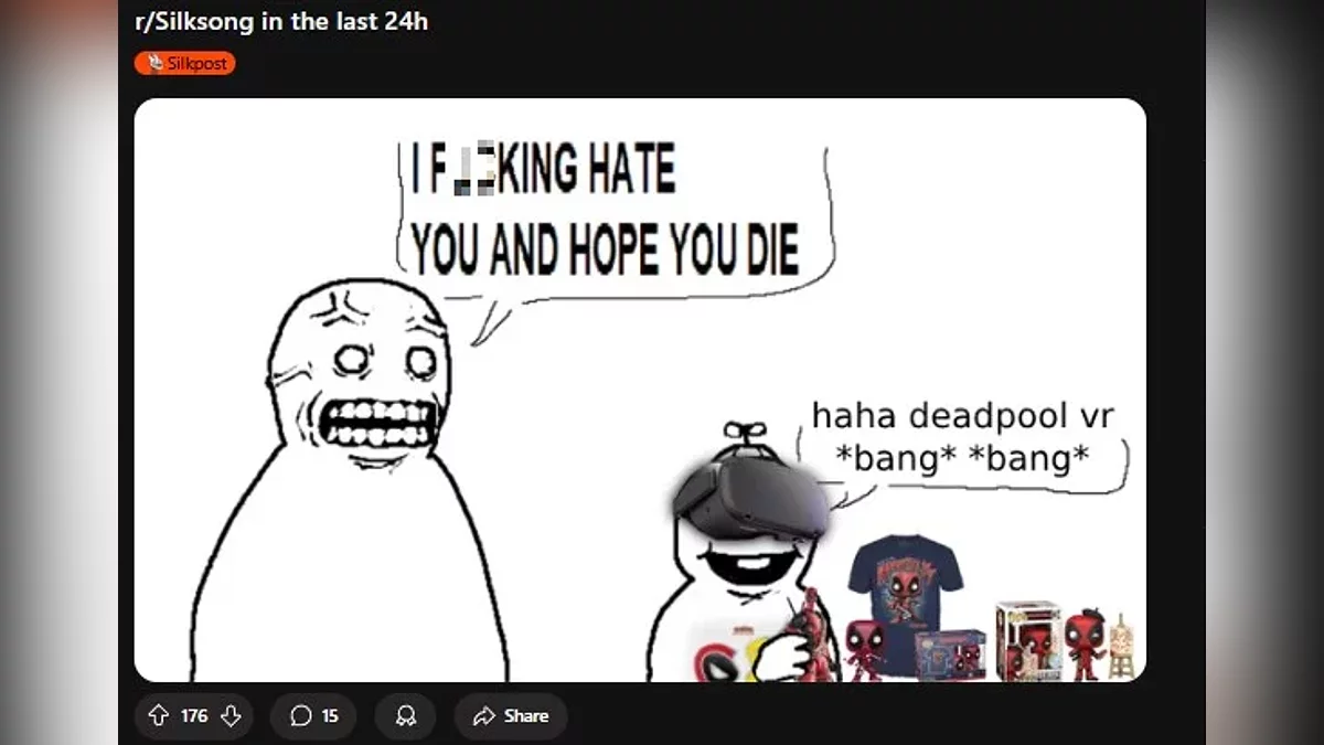 Сабреддит r/Silksong снова в огне — на этот раз из-за шутки на Sumer Game Fest 2025. Новый трейлер Hollow Knight: Silksong якобы не показали из-за анонса Marvel's Deadpool VR.