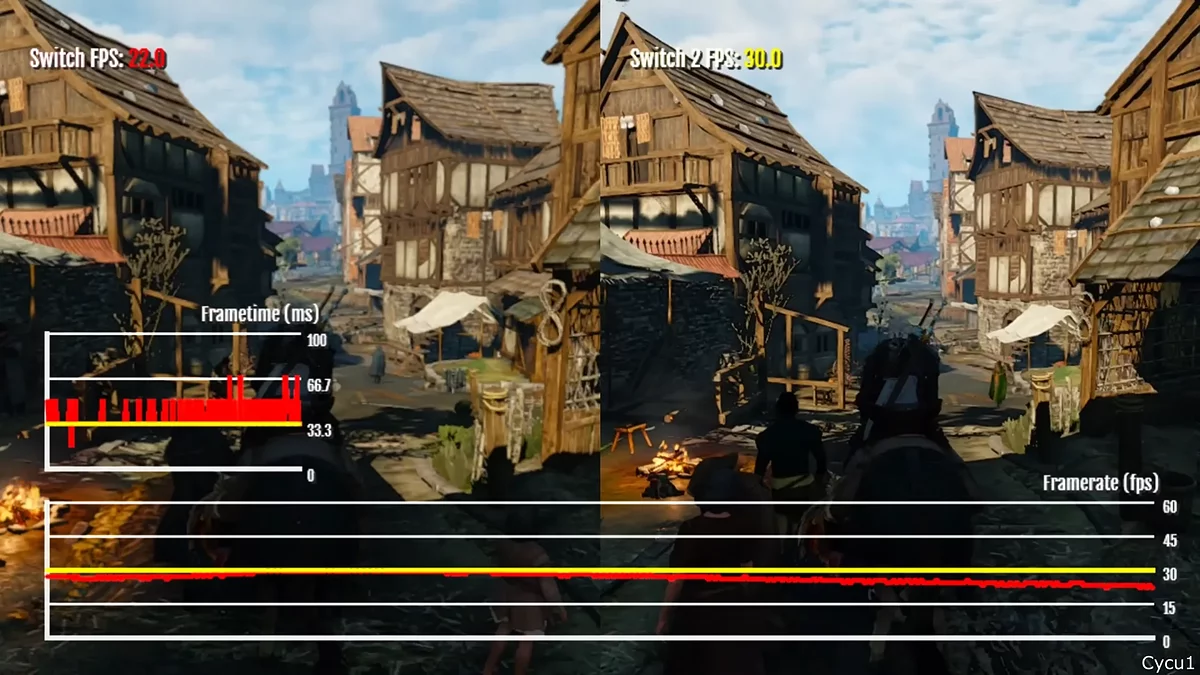 Несложно заметить, что на Switch 2 The Witcher 3 выглядит четче и более детализировано. Что касается частоты кадров, то она на новой консоли Nintendo тоже более стабильная. Там где на первой Switch случались просадки до 22 FPS, на Switch 2 игра стабильно работает при 30 FPS.