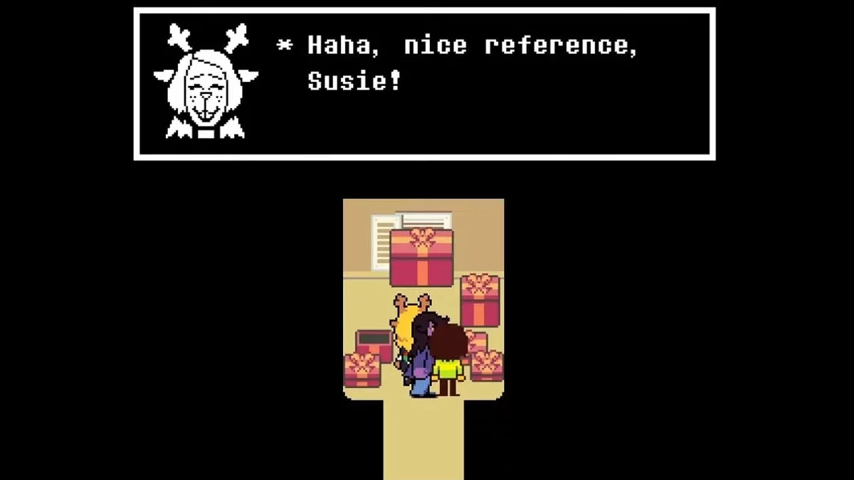 В обновленных главах 3 и 4 адвенчуры Deltarune игроки нашли пасхалку, связанную с популярной игрой Among Us. В одном из эпизодов в доме Ноэль герои находят пустые коробки в шкафу, и Сюзи комментирует: «как-то подозрительно (“sus”)... особенно вентиляция», намекая на механику Among Us. Ноэль, в свою очередь, прямо говорит, что это отсылка к игре, но Сюзи не понимает шутки.