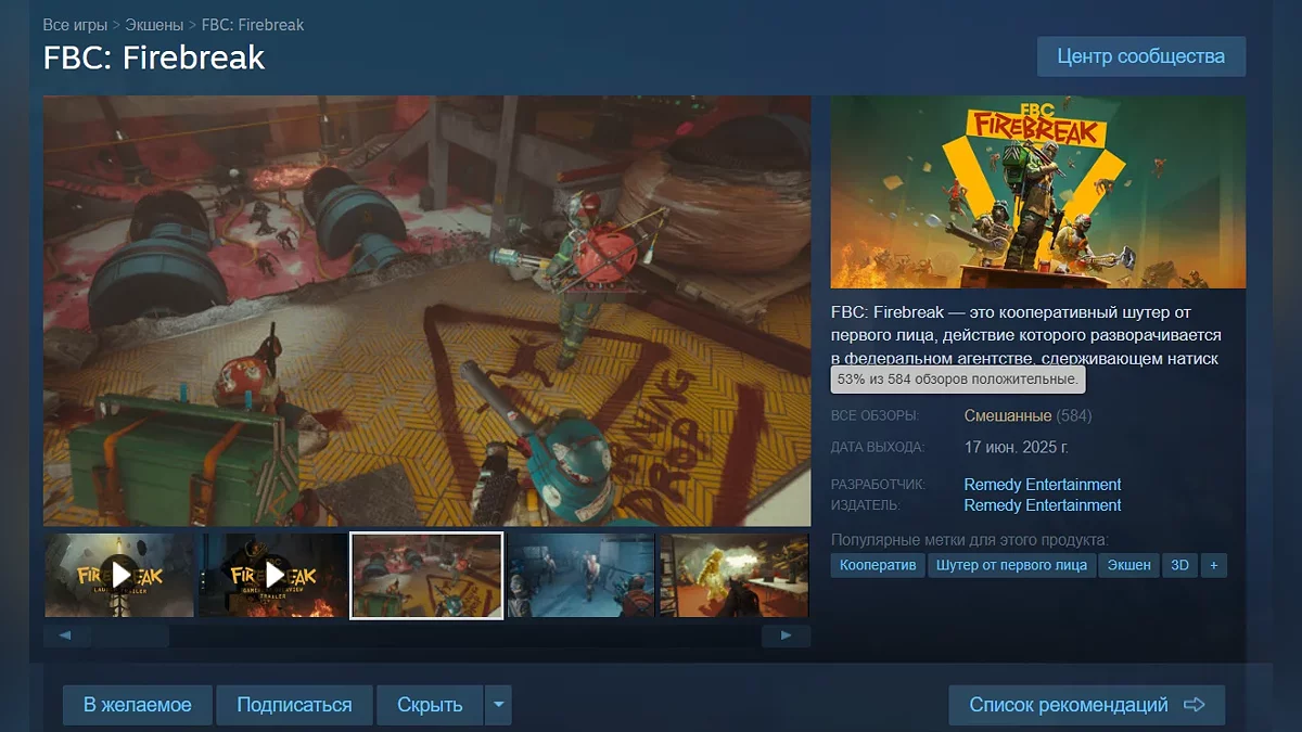 Совсем недавно Remedy Entertainment выпустила на PC, PlayStation 5 и Xbox Series X/S кооперативный шутер от первого лица FBC: Firebreak, действие которого разворачивается во вселенной Control. Примечательно, что в Steam проект получил смешанные отзывы.