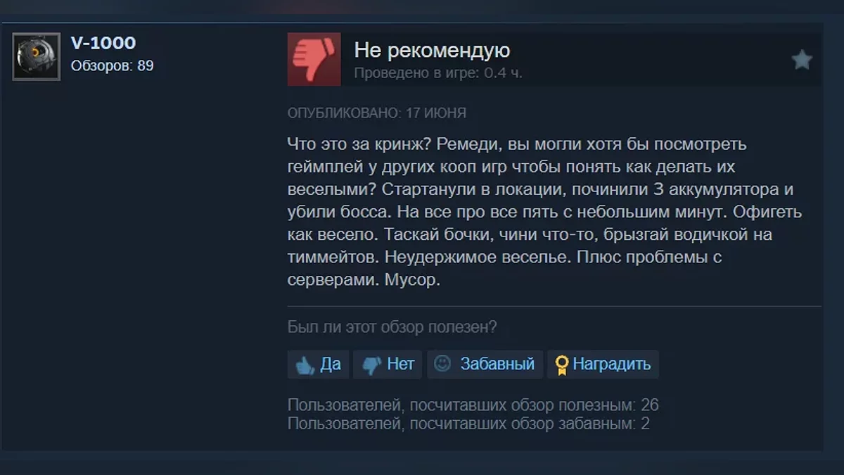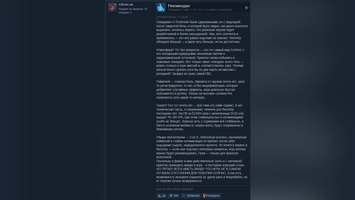 Как геймеры в Steam оценили FBC: Firebreak от создателей Alan Wake — игру уже убрали с продажи в РФ