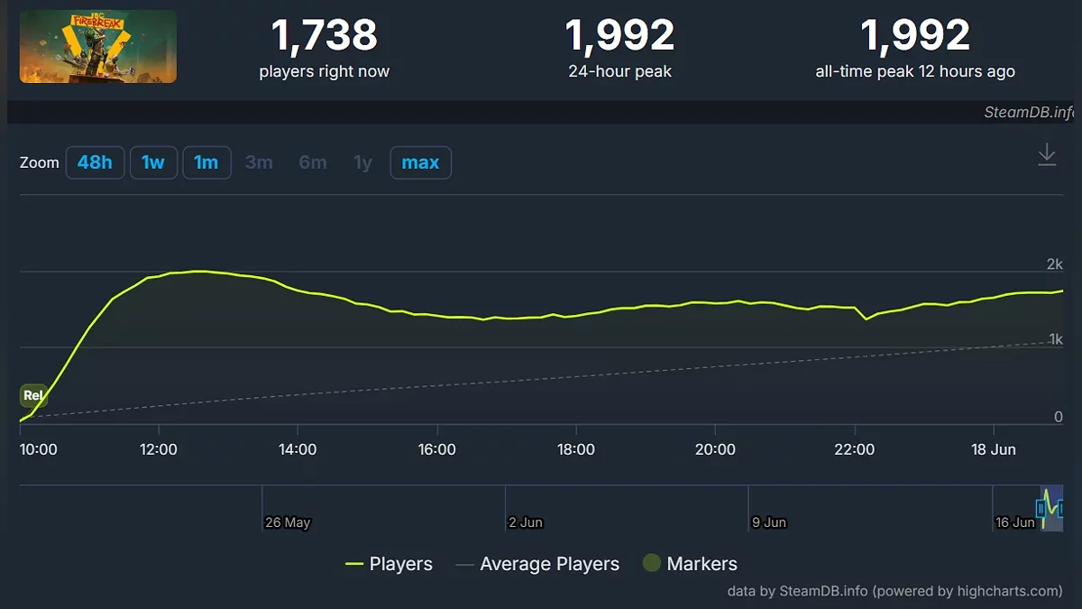 Онлайн FBC: Firebreak в Steam составил почти 2 тыс игроков.