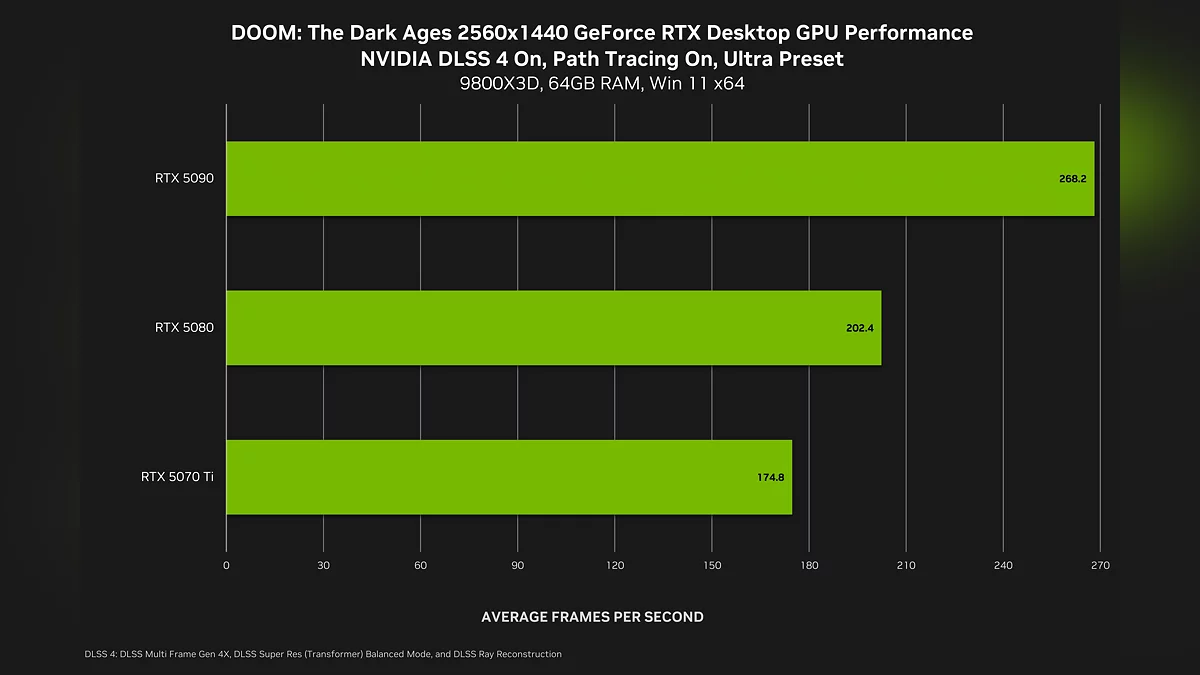 Патч выйдет уже 18 июня. По словам NVIDIA, благодаря функции DLSS 4 частота кадров в Doom: The Dark Ages увеличится в 6,8 раз на GeForce RTX 5090 и GeForce RTX 5080 в 4K-разрешении и с ультра-настройками.
