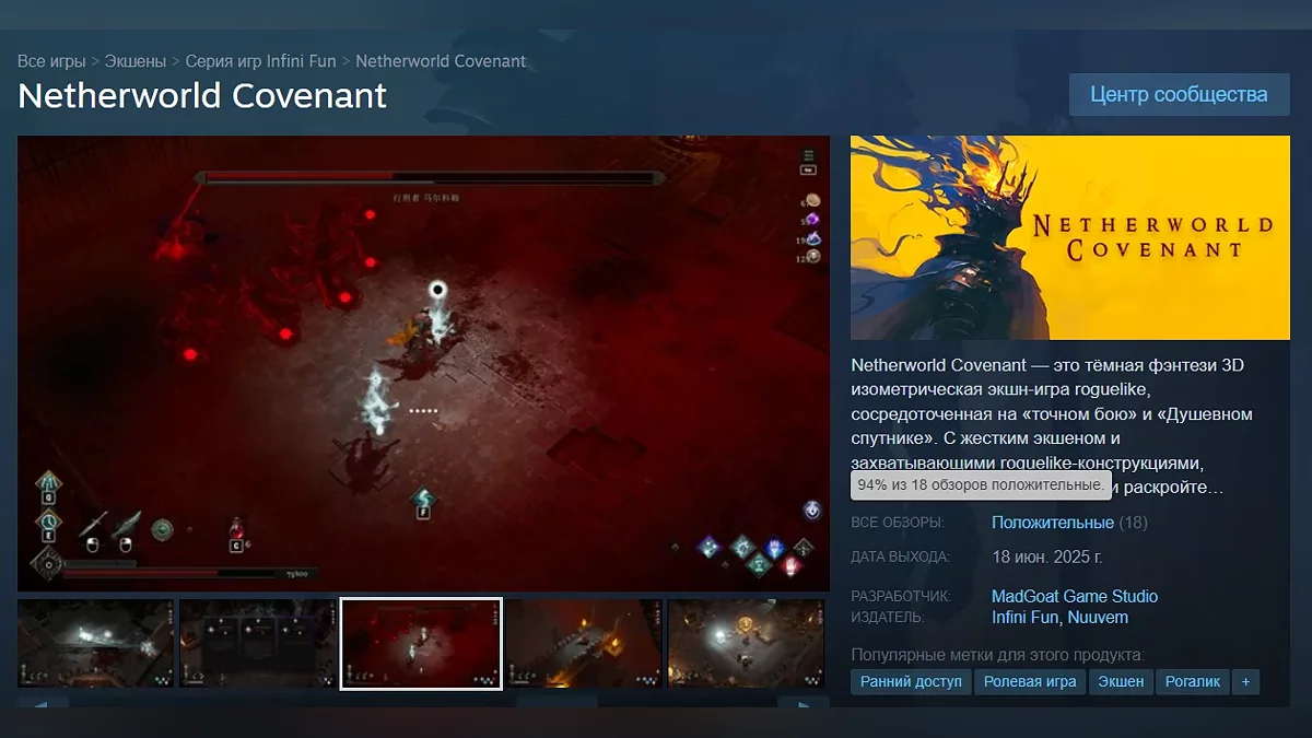 Купить Netherworld Covenant в Steam можно за 629 руб с учетом скидки 10% (действует до 2 июля). Игра также доступна в EGS. Есть демоверсия.