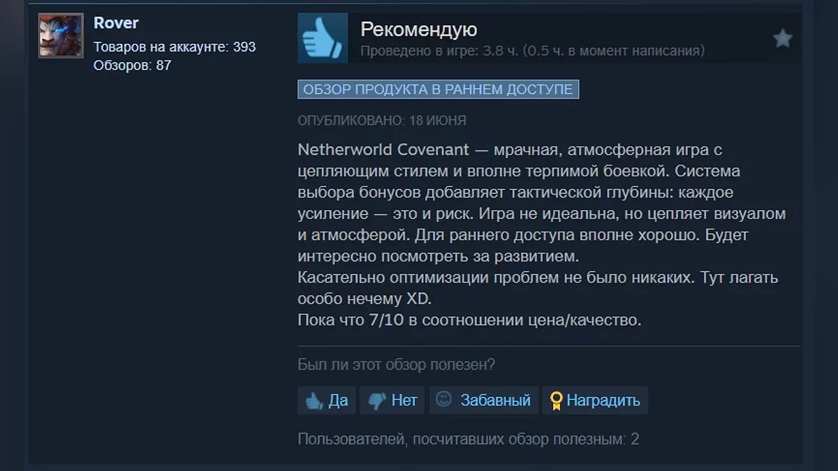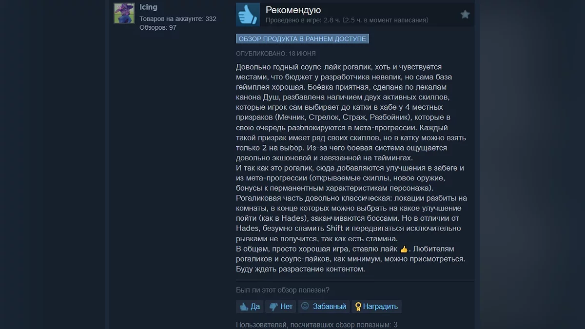 В отзывах некоторые пользователи называют проект смесью Dark Souls и Hades.