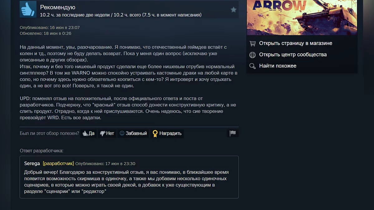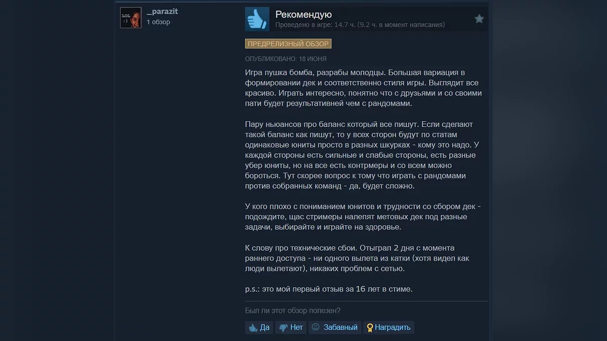 Благодаря раннему доступу в Steam геймеры, оформившие предзаказ Vanguard-издания Broken Arrow, уже смогли опробовать игру и поделиться первыми впечатлениями. Сейчас проект имеет 76% положительных отзывов.