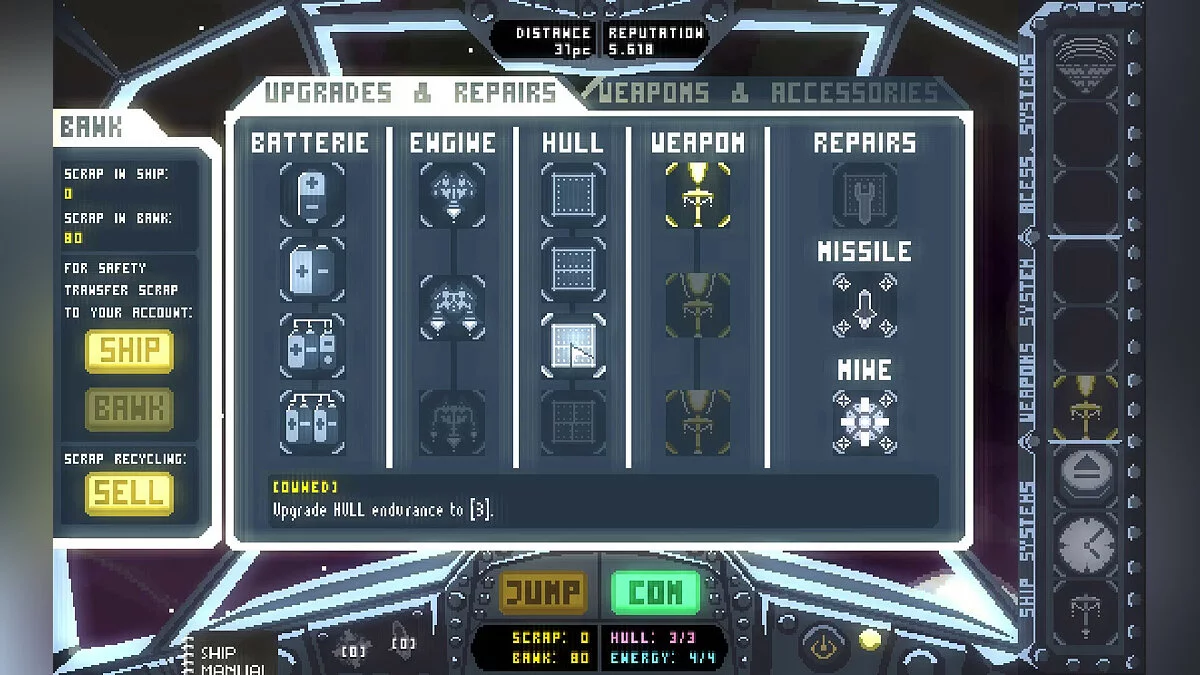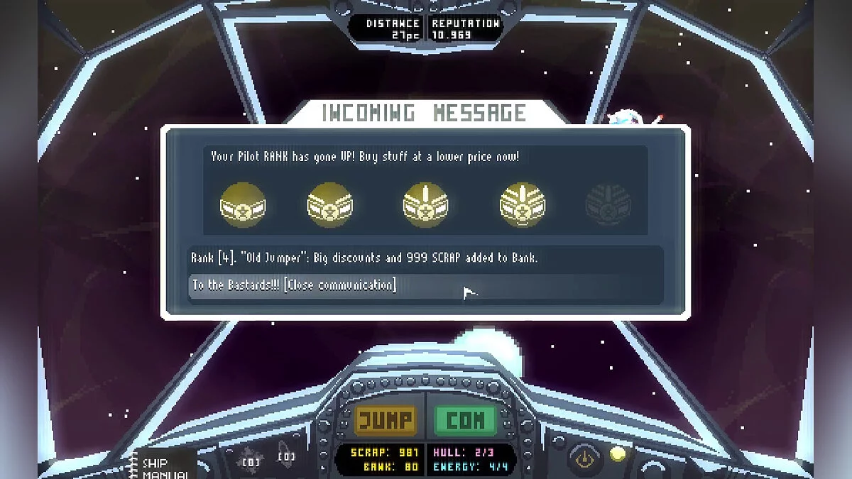 В последнем обновлении появились три новых корабля (в том числе один секретный), режим «Ставки на репутацию», три уровня сложности и обновленный интерфейс. Игра вдохновлена такими проектами, как Final Fantasy Tactics, FTL и классические аркадные шутеры, а также включает внутриигровое руководство, выполненное в стиле старых мануалов.