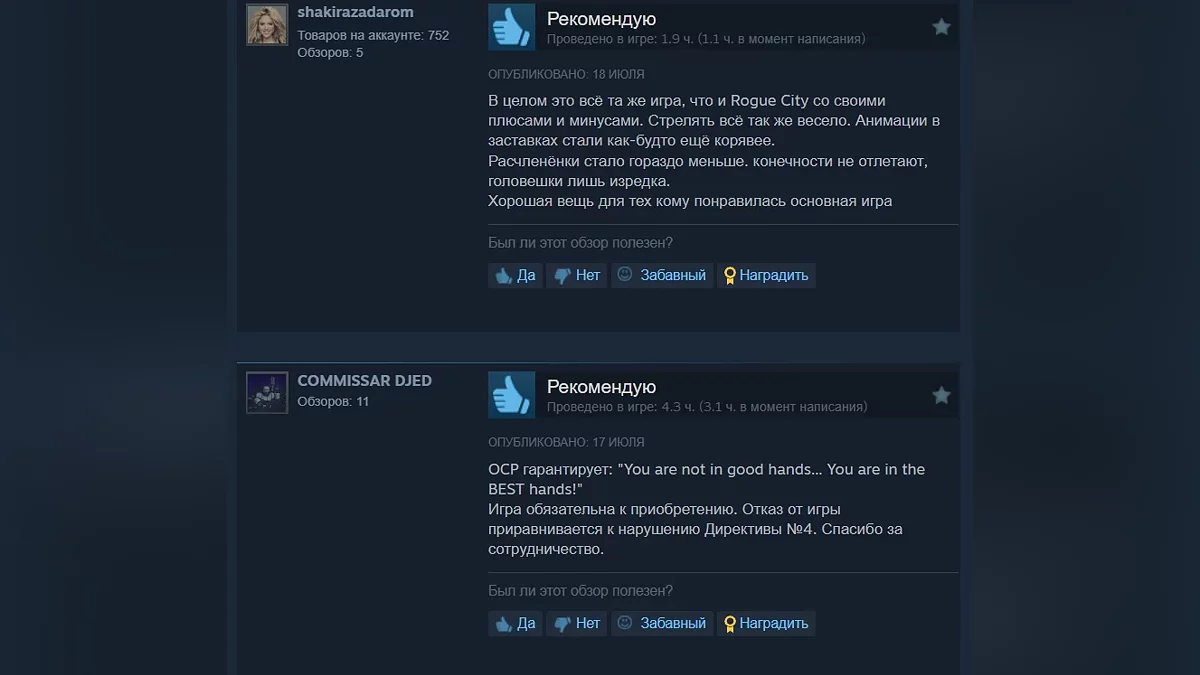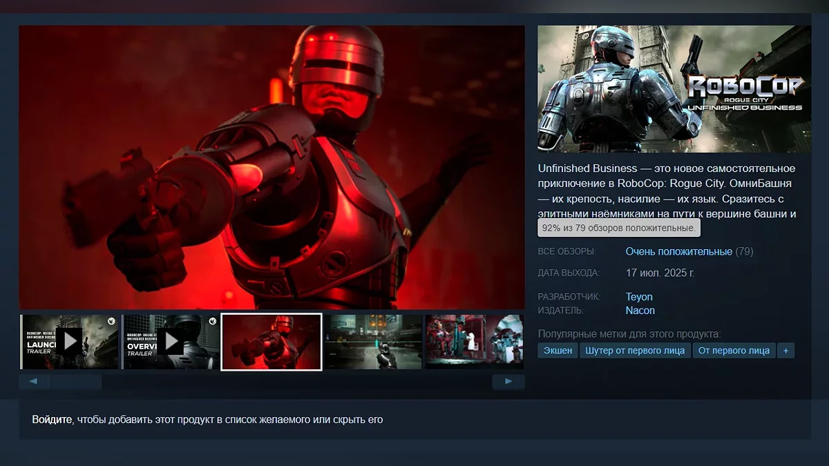 Состоялся релиз RoboCop: Rogue City — Unfinished Business. В Steam появились первые отзывы