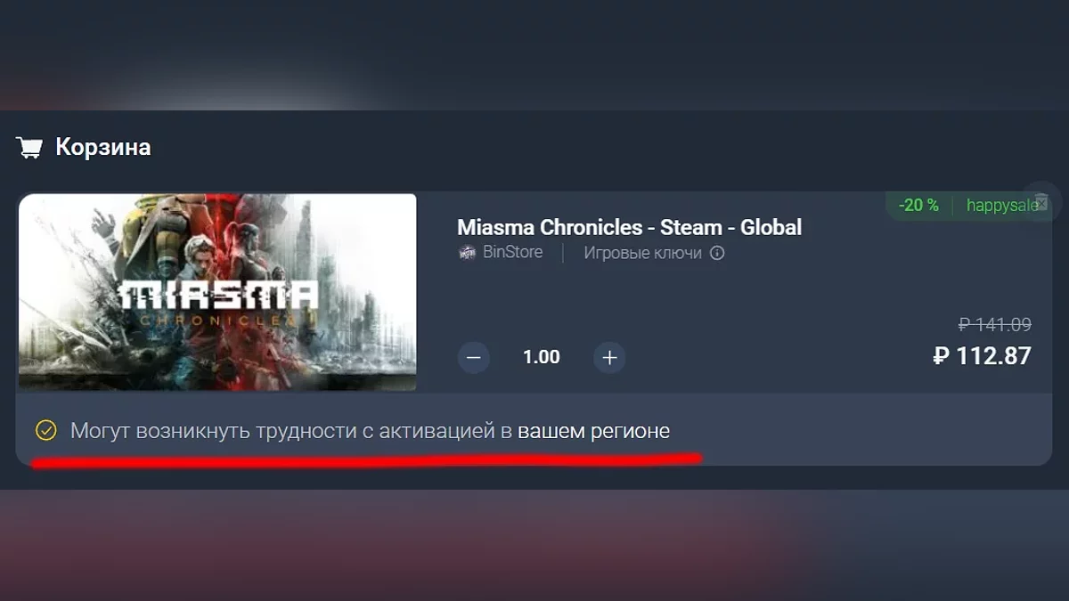 В связи с санкциями многие издатели удалили свои игры из российского Steam. В таком случае с активацией ключа в этом регионе могут возникнуть проблемы. Соответствующая надпись будет в описании товара: