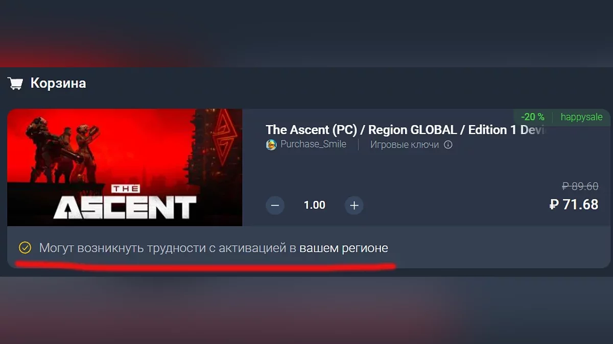 В связи с санкциями многие издатели удалили свои игры из российского Steam. В таком случае с активацией ключа в этом регионе могут возникнуть проблемы. Соответствующая надпись будет в описании товара: